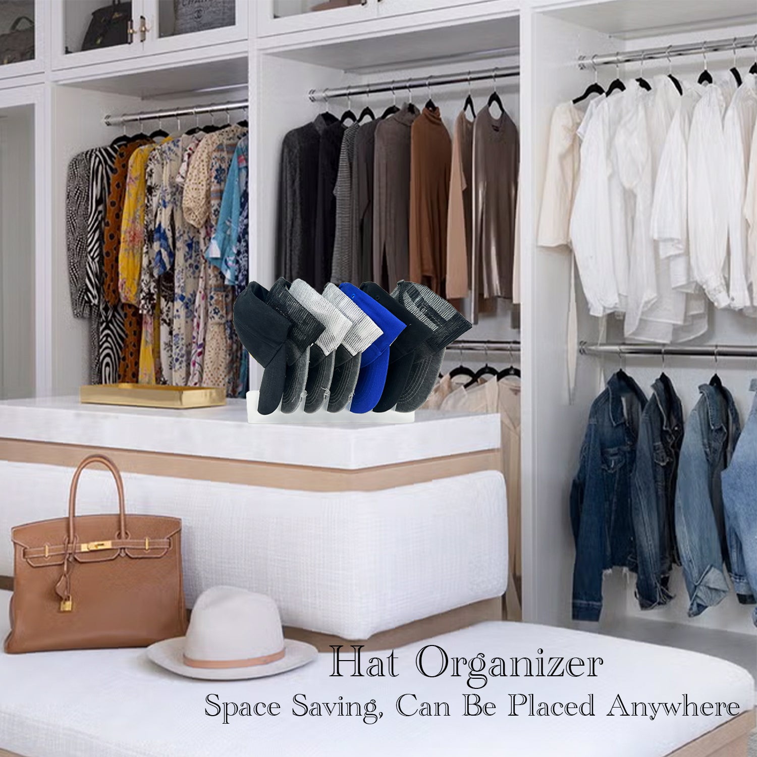 Store and display your hats in style with our Acrylic Hat Stand. Made of durable acrylic, it holds 14 baseball caps without the need for installation. Keep your hats organized and visible, making it easy to grab and go. Perfect for any hat lover and their collection.