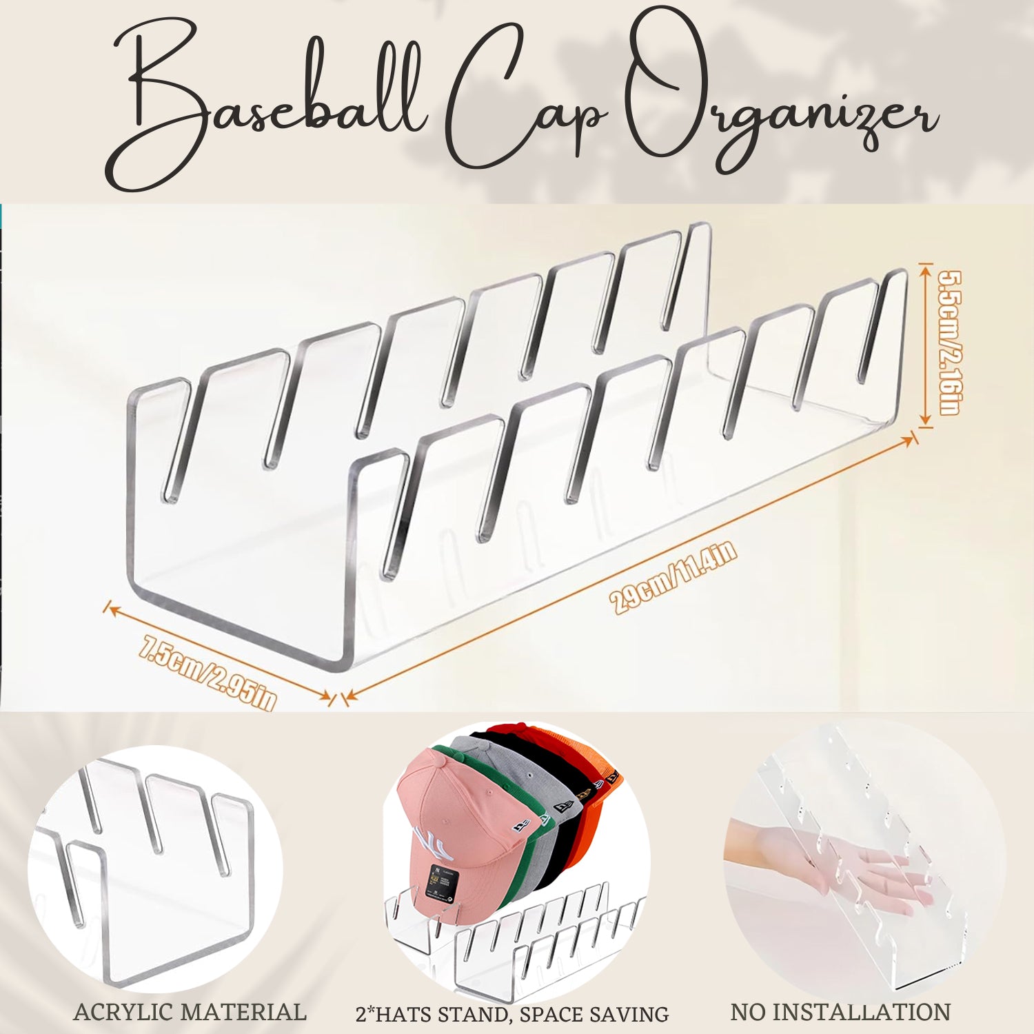 Acrylic Hat Stand | Hat Organizer | Baseball Caps Display