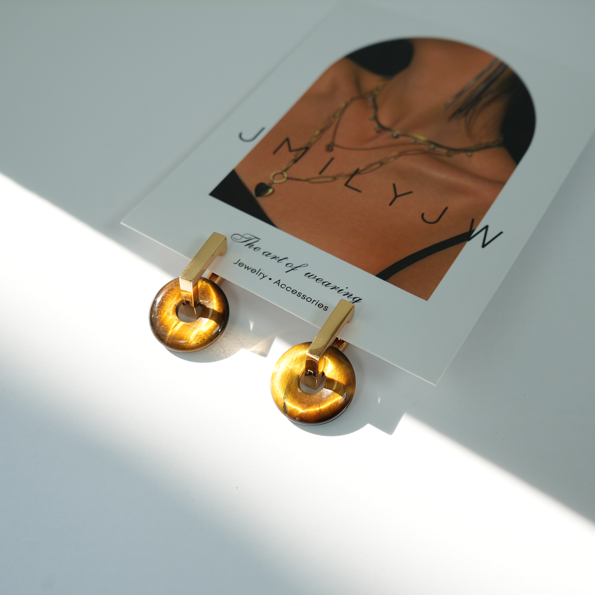 Elevate your style with these exquisite, handcrafted tiger eye stone earrings. Designed with precision and care, each pair features a striking 15mm x 15mm round-cut tiger eye stone, showcasing the stone's natural beauty and unique golden-brown hues. The earrings are elegantly set in high-quality Silver 925 and finished with luxurious 18k gold plating, adding a touch of sophistication to every wear.