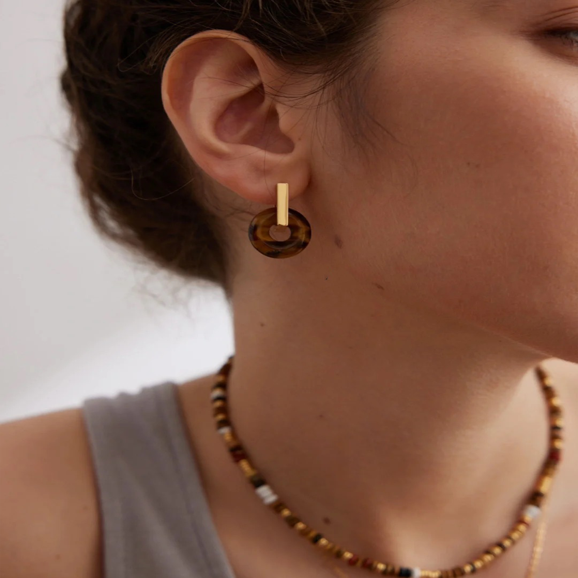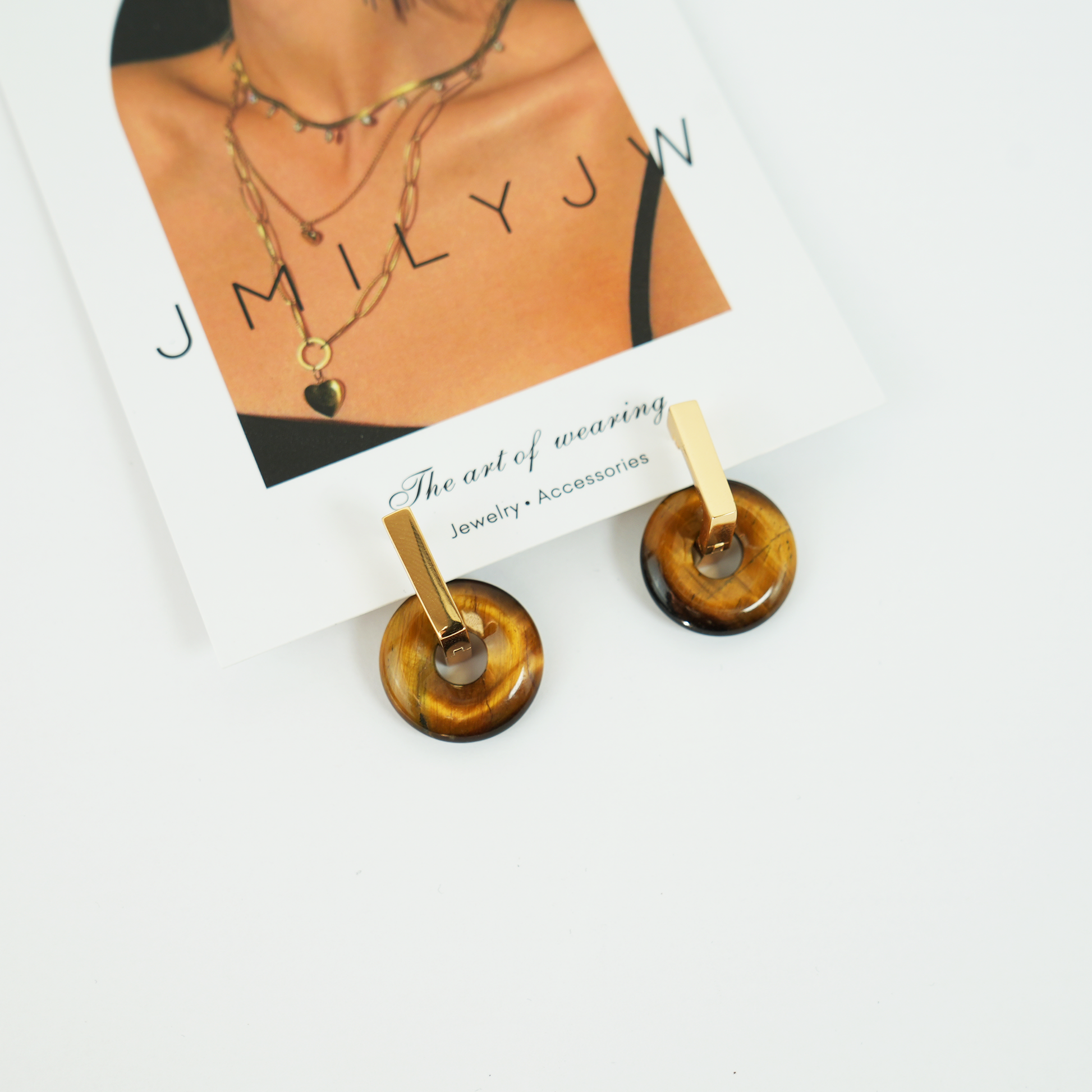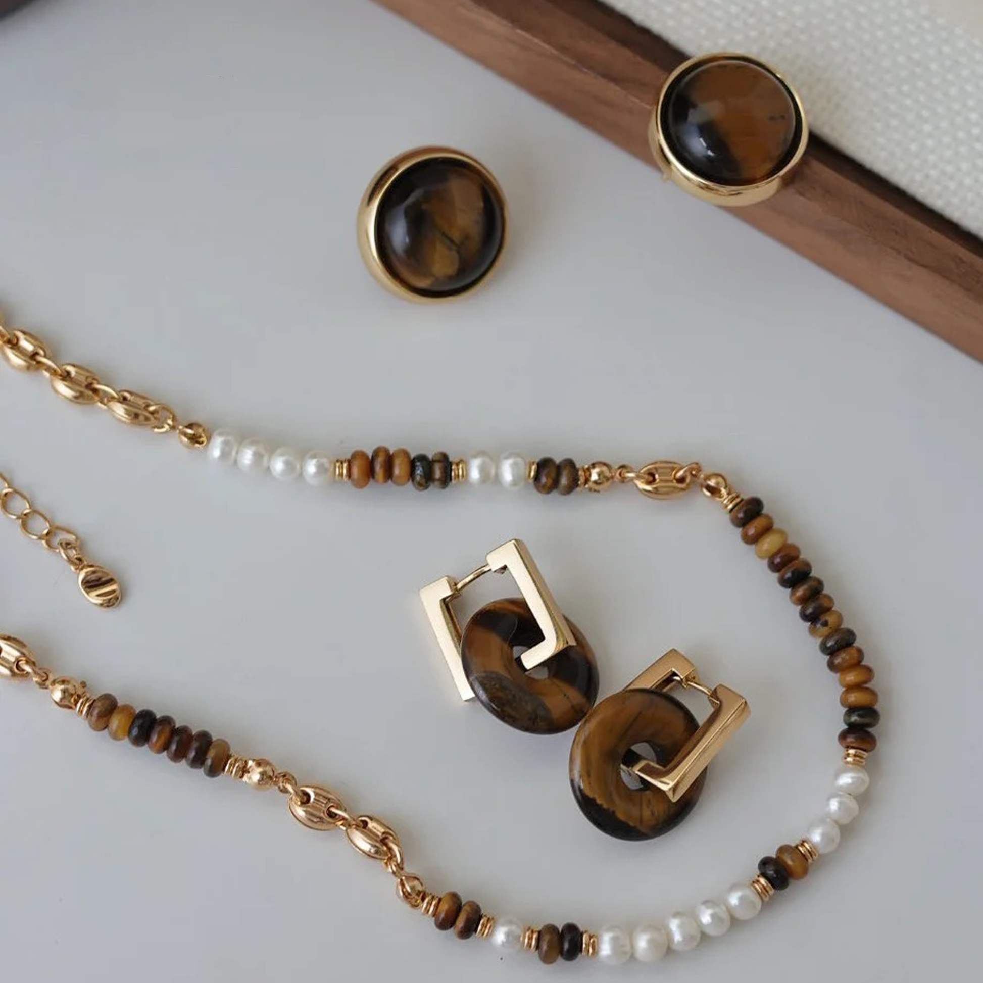 - **Stone:** Genuine tiger eye stone, known for its captivating natural patterns and earthy tones.
